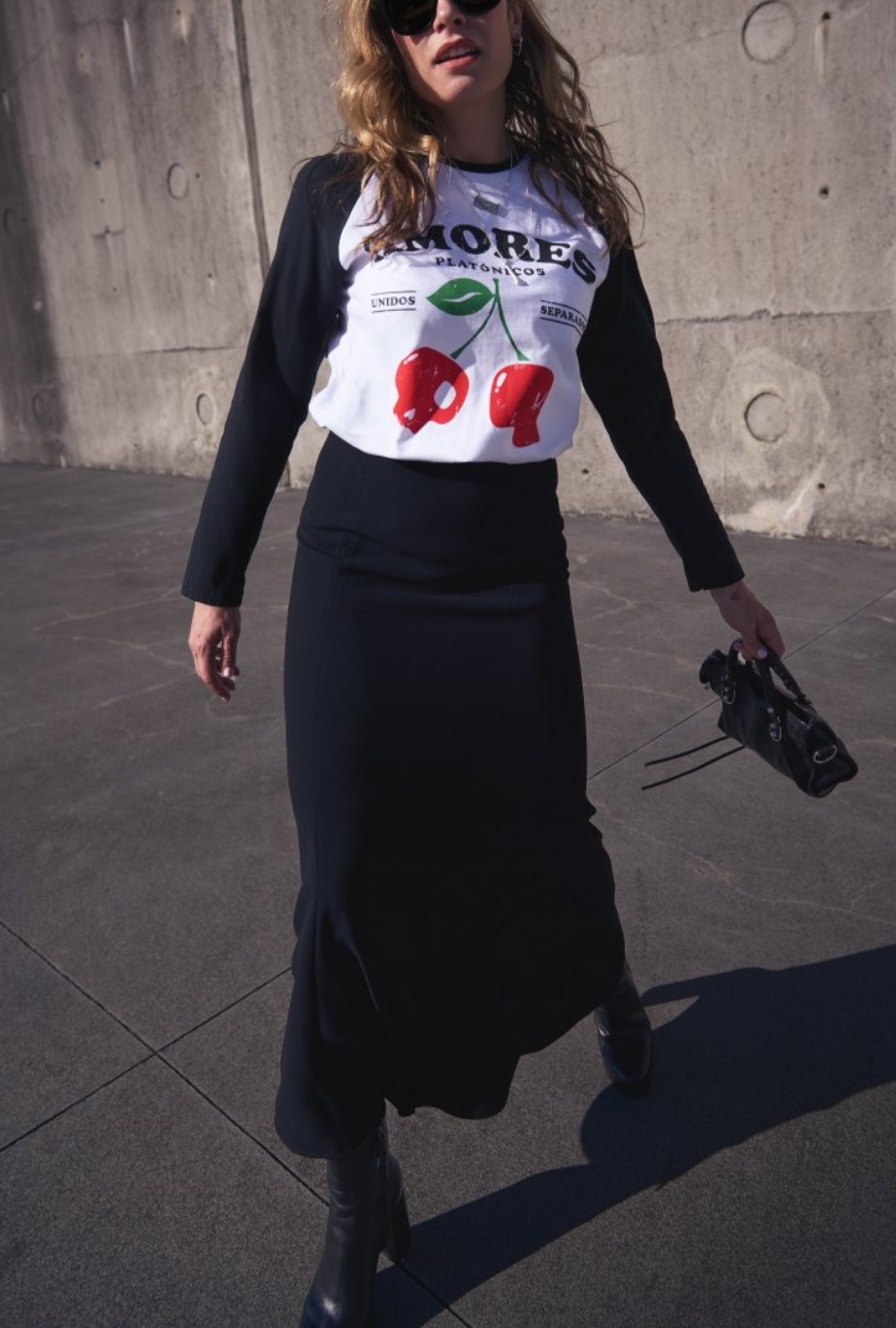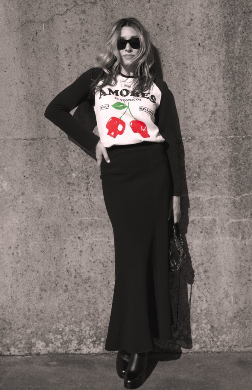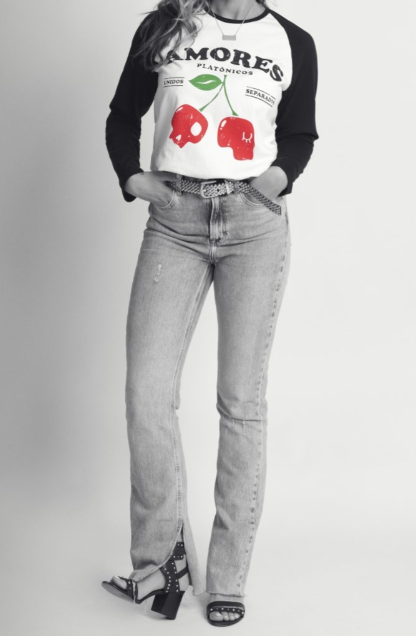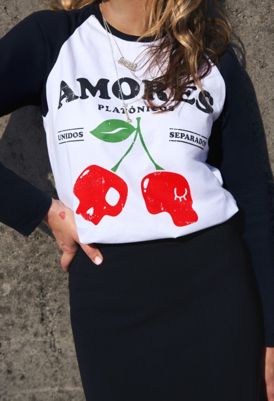 Camiseta de manga larga tipo beisbol con ilustración «amores platonicos» en la parte delantera