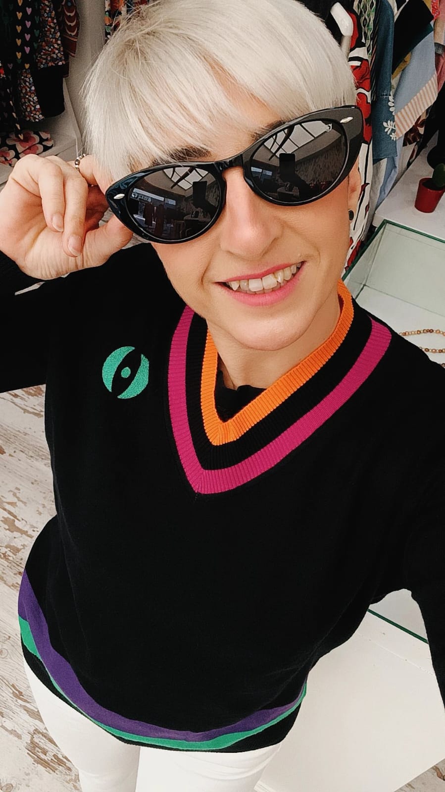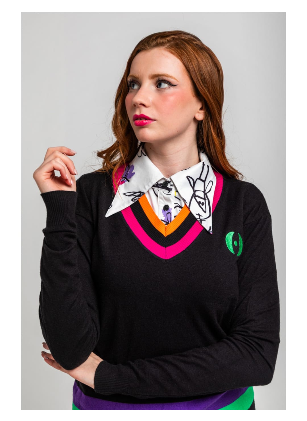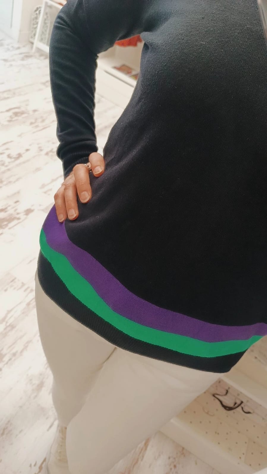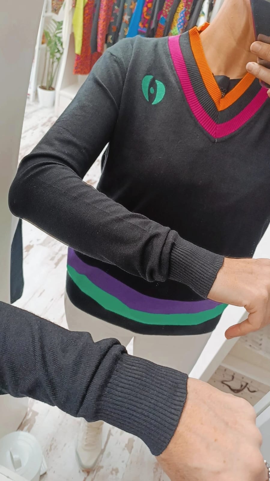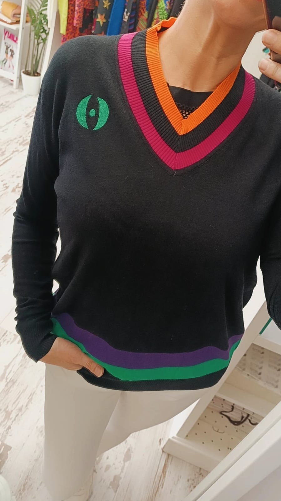 Suéter escote pico negro de colores combinado – Imagine