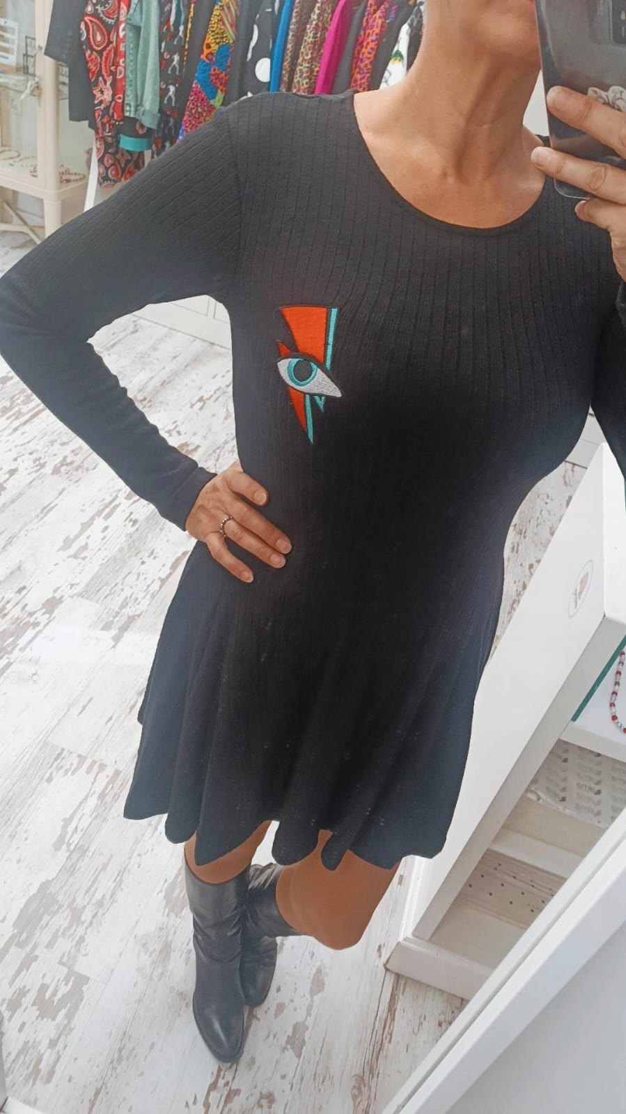 Vestido BOWIE punto canalé en negro Elástico con vuelo abajo y suave caída